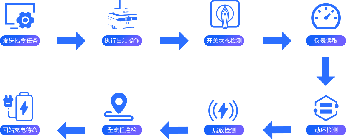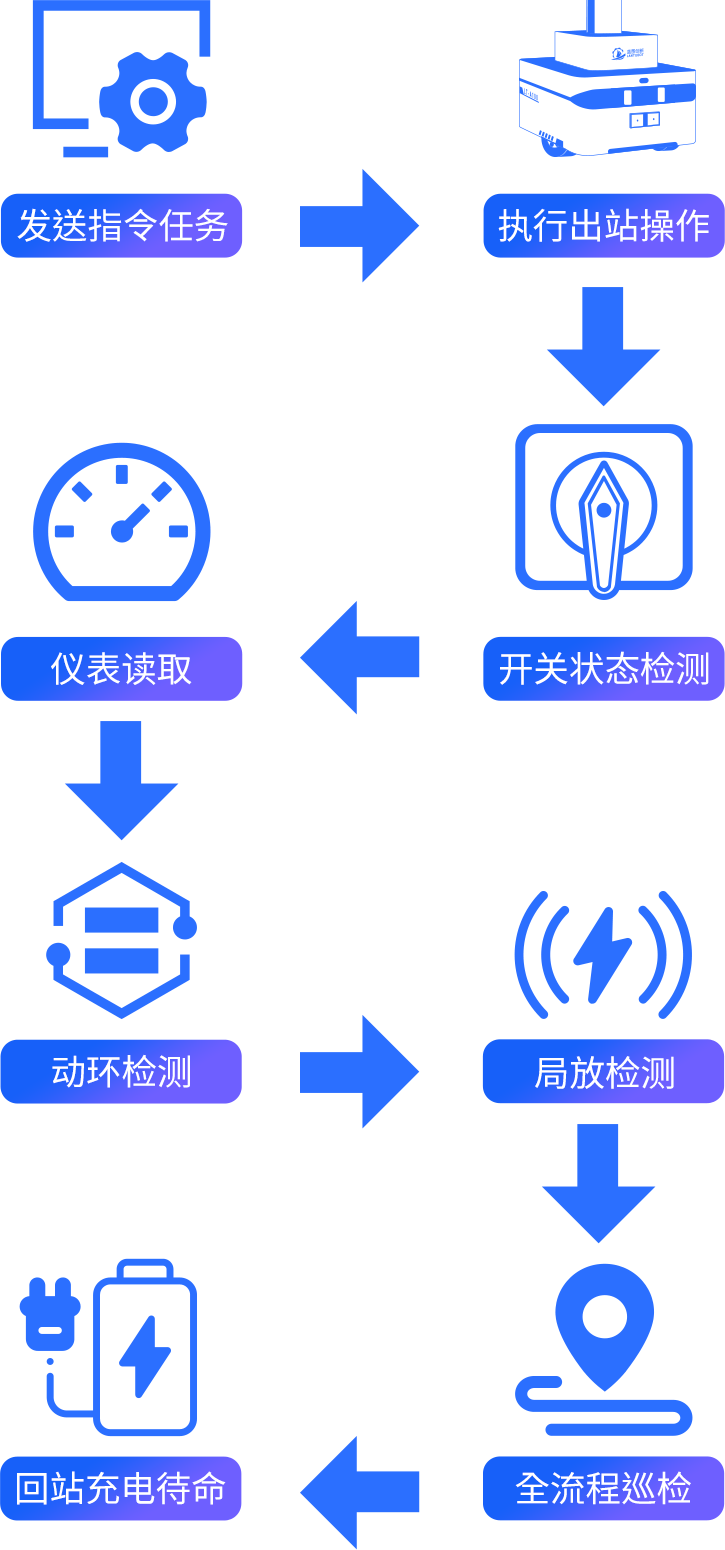 配电房智能巡检机器人的巡检流程是一个高度自动化、智能化的过程, 旨在提高巡检效率、降低人工成本并确保配电设备的安全运行。